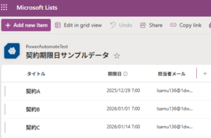 今回のフローでは、契約情報を管理するためにSharePointリストを使います。