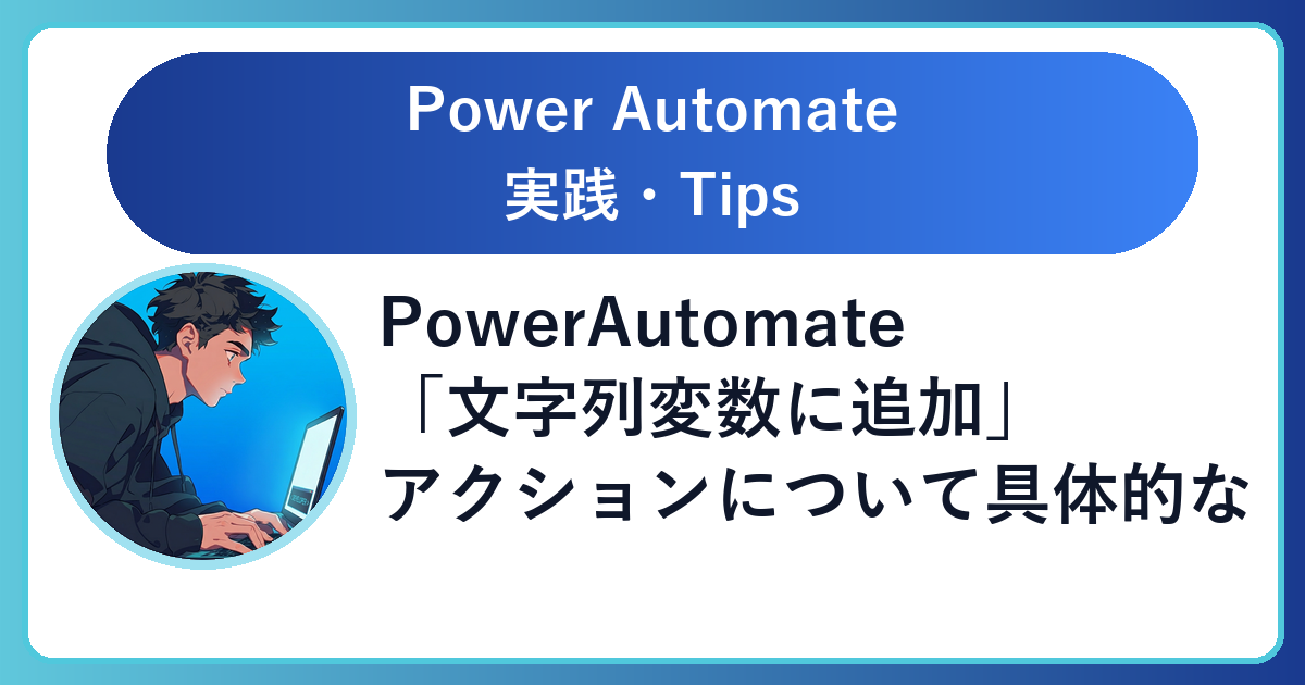 今回はPowerAutomateの「文字列変数に追加」アクションについて、