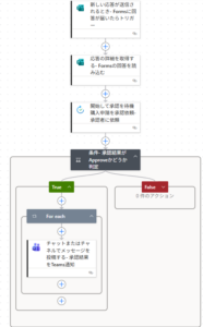 この承認フローは、Formsで申請を受け取り、承認依頼を送信し、結果をTeamsで通知するという一連の流れを自動化できます。