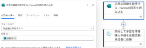 今回のフローはFormsで申請が送信されることがトリガー(フローが開始するきっかけ)となります。