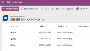 - リスト名:契約期限日サンプルデータ