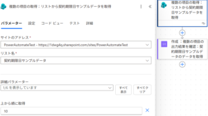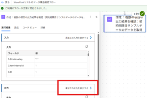 ここまでフローの作成が終わったら、テスト実行して「複数の項目の取得」アクションの出力をJSONで確認していきます。